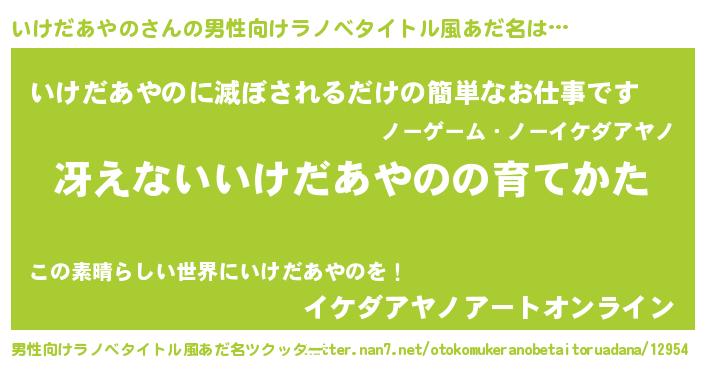 | 肩書あだ名 | 『いけだあやの艦長』『いけだあやの店長』 |