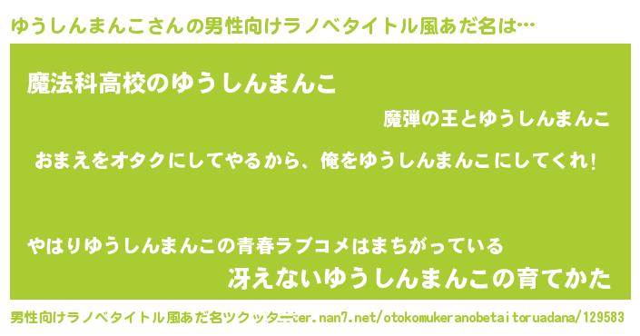 | 女子向けラノベタイトル風あだ名 | 『ゆうしんまんこ恋絵巻』 |