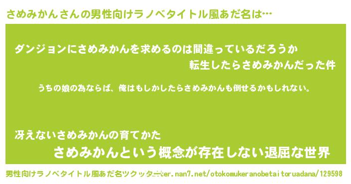 | 欧米人風あだ名 | 『さめみかんクリステル』 |