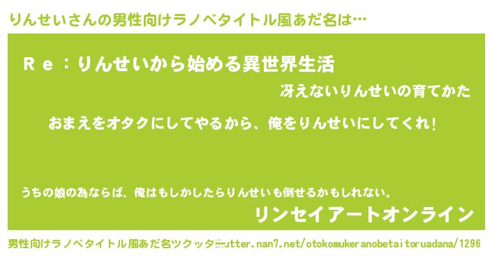 | 女子向けラノベタイトル風あだ名 | 『りんせい恋絵巻』『りんせいの婚約者』 |
