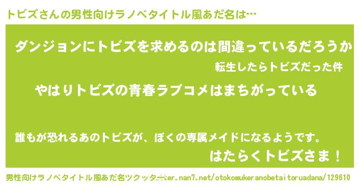 | ファンタジー風あだ名 | 『エターナルトビズー』『トビディッシュ』 |