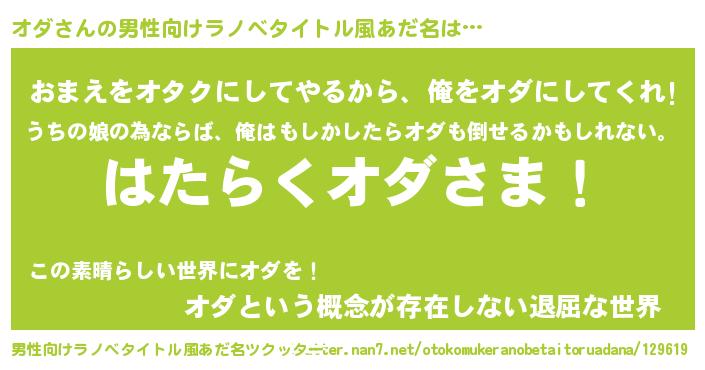オダさんの男性向けラノベタイトル風あだ名をツクッター!