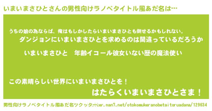 | 女子向けラノベタイトル風あだ名 | 『いまいまさひとの玉の輿計画!』 |