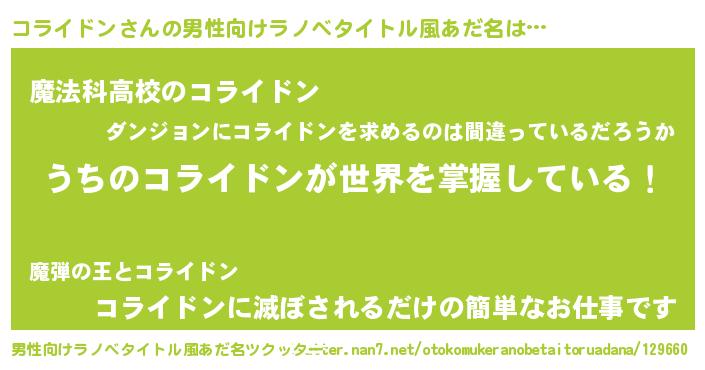 | 胡散臭い通販商品みたいなあだ名 | 『芸能人もオススメするアガリクス…その名も「コライドン」』 |