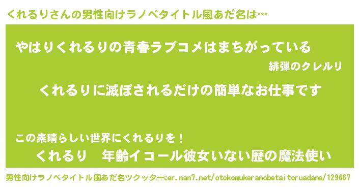 ヒーロー風カッコイイあだ名 | 『ウルトラくれるりマン』『仮面クレダー』 |