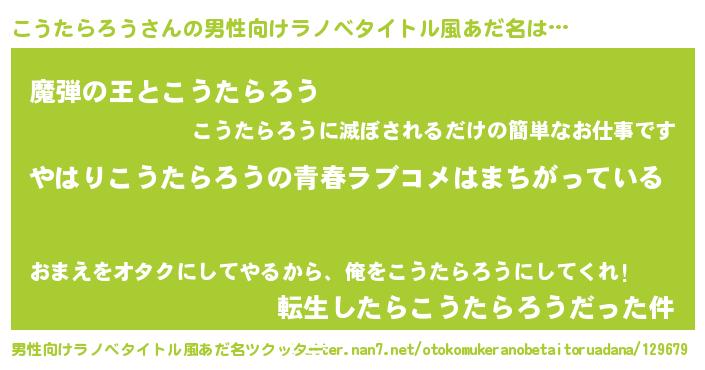 | 女子向けラノベタイトル風あだ名 | 『こうたらろうの雑貨屋さん』 |