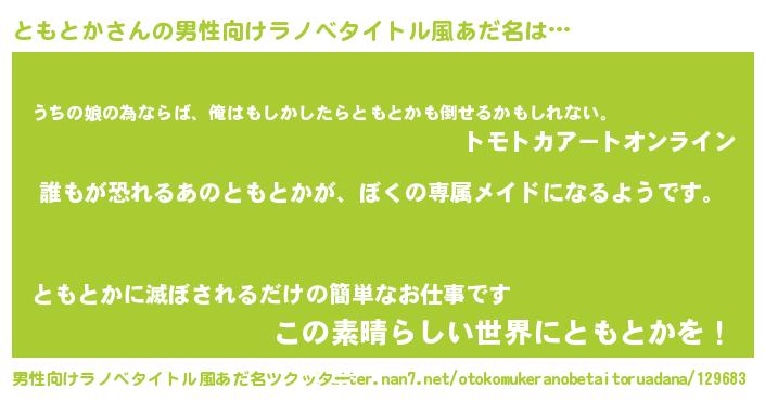 | ヘコむあだ名 | 『ともとか(遠い目)』『なまこ酢』 |