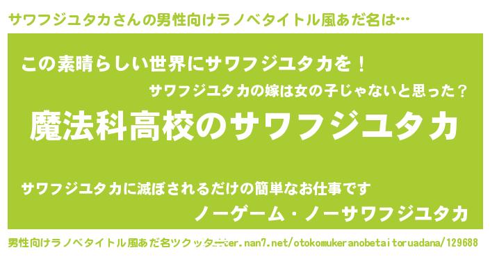 | 女子向けラノベタイトル風あだ名 | 『サワフジユタカなんてお断りですっ。』 |