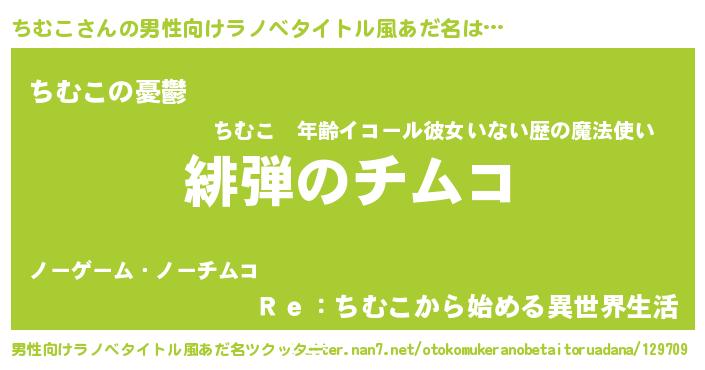 | 意味不明あだ名 | 『ペロリンちむこ』『自称ちむこ』 |