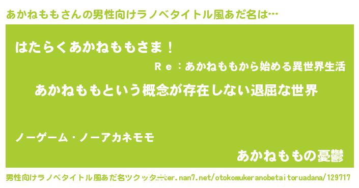 | 女子向けラノベタイトル風あだ名 | 『あかねももの契約王妃』 |