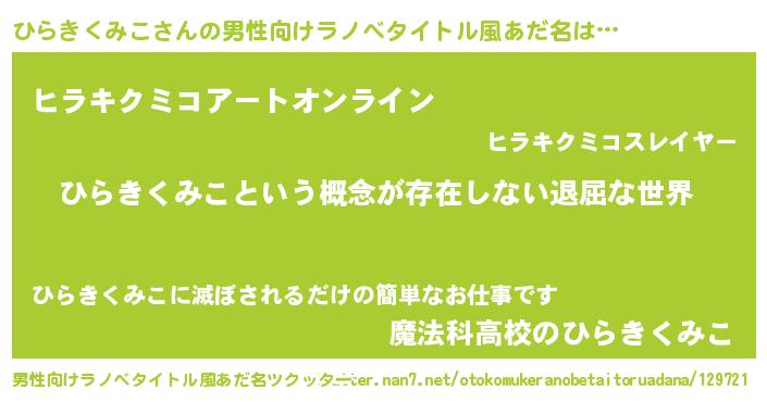 | ヘコむあだ名 | 『ひらきくみこ(小並感)』『ひらっふぃ~』 |