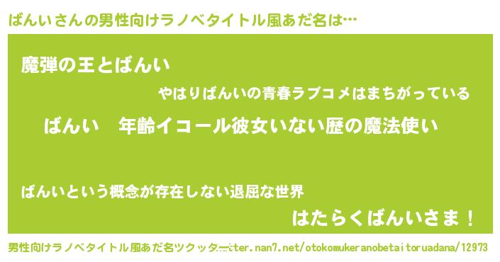 | 女子向けラノベタイトル風あだ名 | 『ばんいの玉の輿計画!』 |