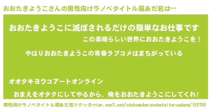 | 女子向けラノベタイトル風あだ名 | 『おおたきようこの雑貨屋さん』 |