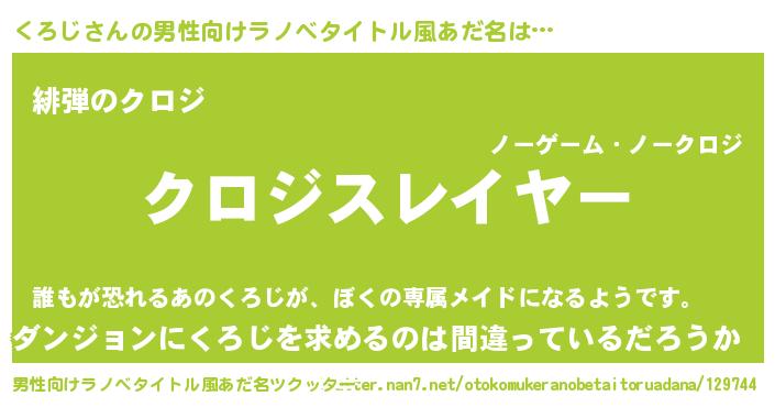 | 胡散臭い通販商品みたいなあだ名 | 『信頼と実績のサプリメント…その名も「くろじ」』 |