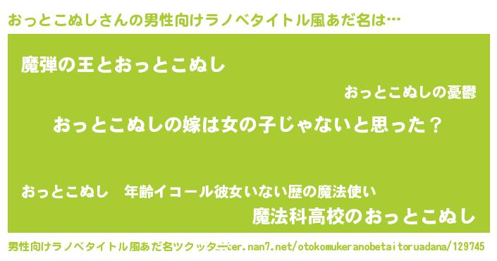 | 女子向けラノベタイトル風あだ名 | 『おっとこぬし様がみてる』 |
