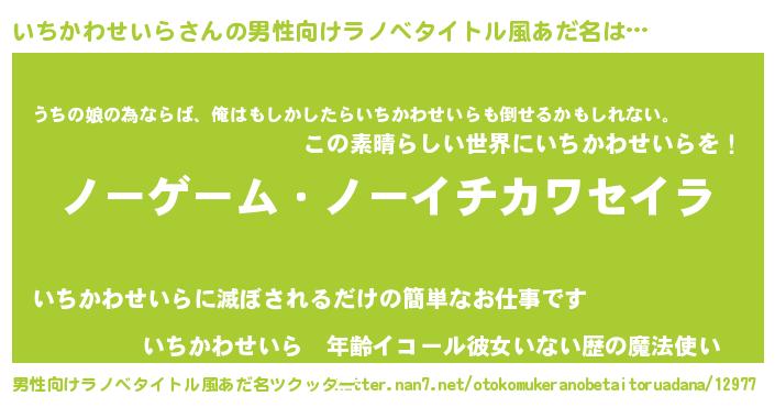 | 女子向けラノベタイトル風あだ名 | 『死神いちかわせいらの再婚』 |