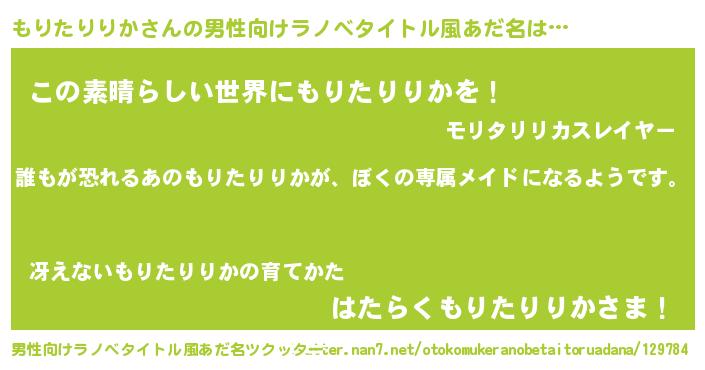 | 肩書あだ名 | 『もりたりりか校長』『もりたりりか教官』 |