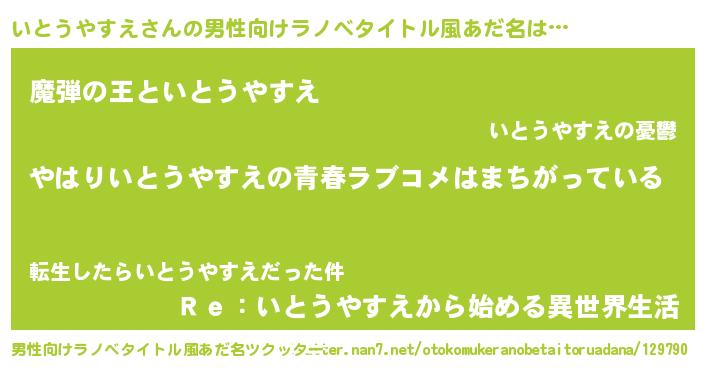 | 女子向けラノベタイトル風あだ名 | 『いとうやすえの雑貨屋さん』 |