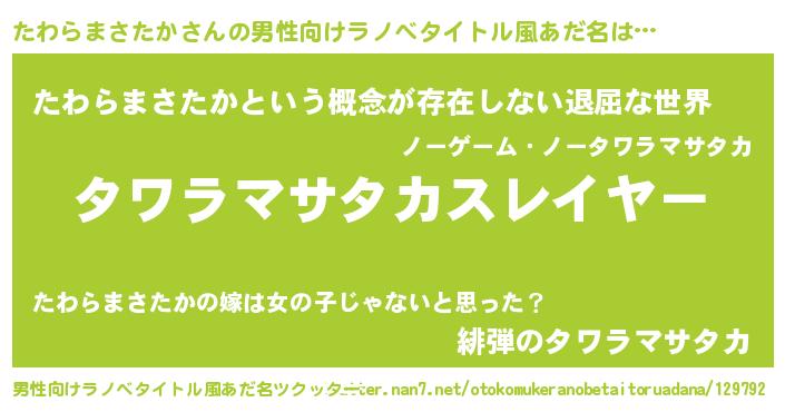 | 肩書あだ名 | 『たわらまさたか中尉』 |