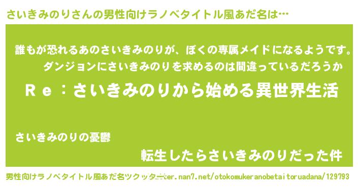 | 女子向けラノベタイトル風あだ名 | 『闇のさいきみのり』 |