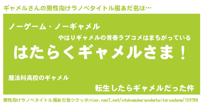 | ヘコむあだ名 | 『豆乳』『ギャにー』『ギャお』 |