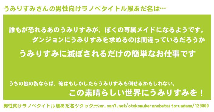 | 意味不明あだ名 | 『永久保存うみりすみ』『自称うみりすみ』 |