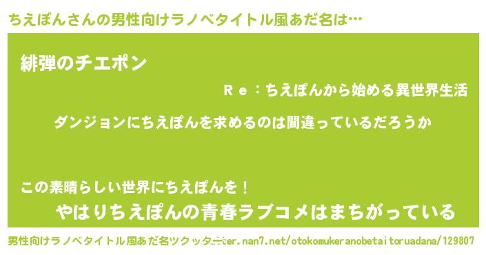 | 女子向けラノベタイトル風あだ名 | 『ちえぽんは平凡を望む』『闇のちえぽん』 |