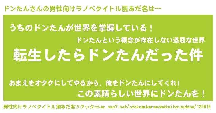 | 料理風あだ名 | 『ドンたんごはん』『ドンたんのトマト煮』 |