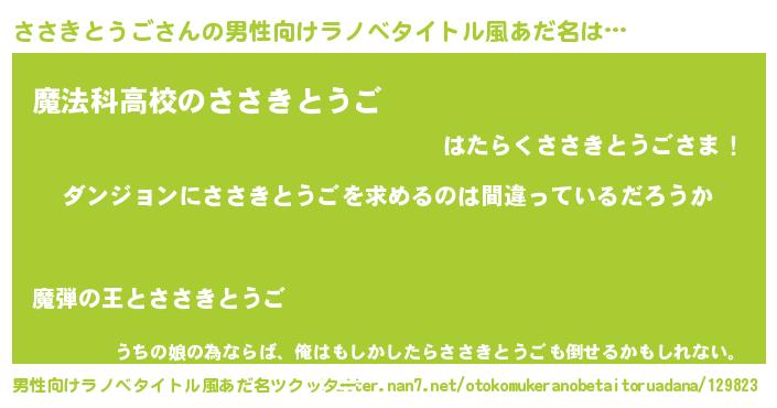 | 女子向けラノベタイトル風あだ名 | 『ささきとうごの卵を拾いまして』 |