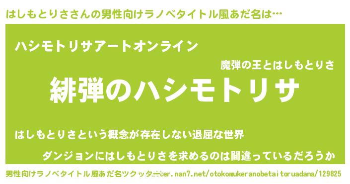 | 胡散臭い通販商品みたいなあだ名 | 『必ず成功するブレスレット…その名も「はしもとりさ」』 |