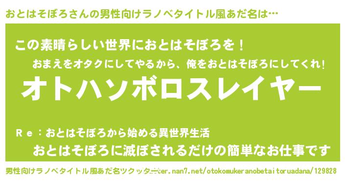 | 胡散臭い通販商品みたいなあだ名 | 『ハリウッド女優が絶賛した世界で10本だけ現存している希少なブランデー…その名も「おとはそぼろ」』 |