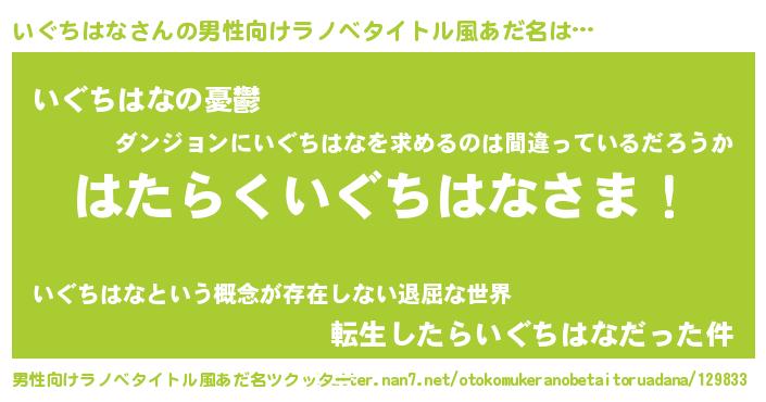 | ヒーロー風カッコイイあだ名 | 『スーパーイグチハナ』『魔戒騎士イグ』 |