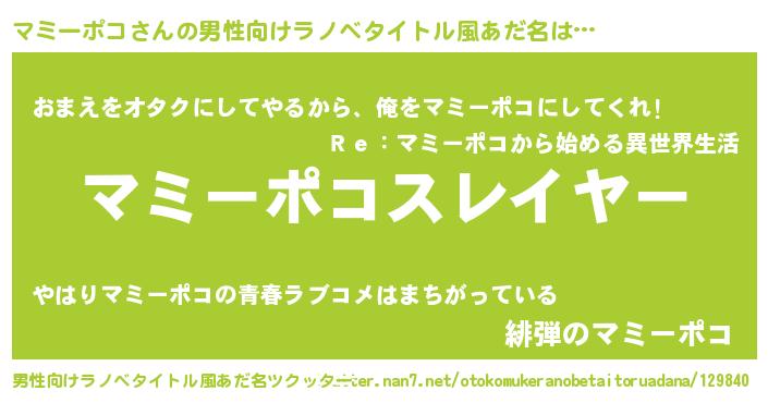 | ヒーロー風カッコイイあだ名 | 『正義の使者マミーポコ』『幻影騎士マミ』 |