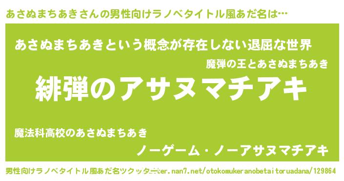 | 意味不明あだ名 | 『永久保存あさぬまちあき』 |