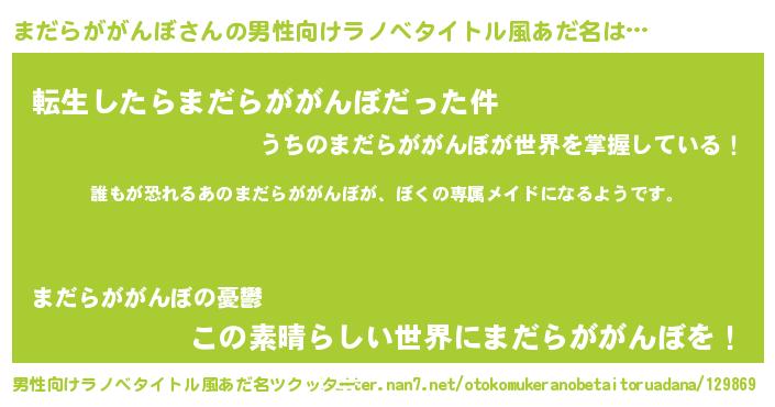 | ヘコむあだ名 | 『まだらががんぼ(笑)』『まだもー』 |
