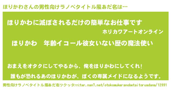 | ヘコむあだ名 | 『ほりかわ(笑)』『ほりもー』 |