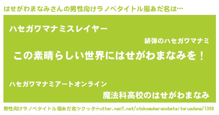 | 意味不明あだ名 | 『住所不定無職はせがわまなみ(98歳)』 |