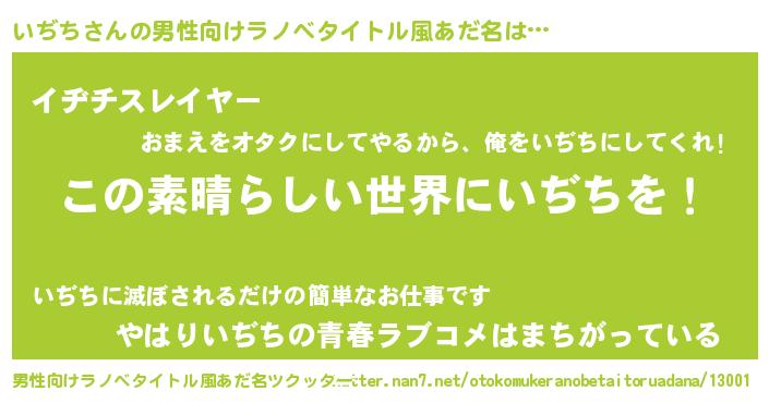 | 意味不明あだ名 | 『住所不定無職いぢち(39歳)』 |
