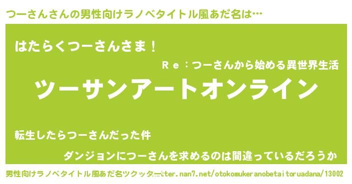 | 女子向けラノベタイトル風あだ名 | 『つーさん姫と円卓の騎士』 |