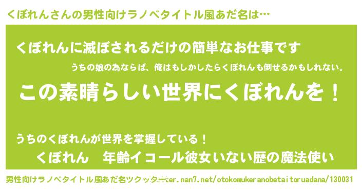 | 意味不明あだ名 | 『住所不定無職くぼれん(6歳)』 |