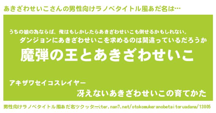 | 意味不明あだ名 | 『住所不定無職あきざわせいこ(53歳)』 |