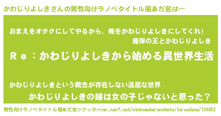 | ヘコむあだ名 | 『かわっちょ』『かわじりよしき(小並感)』 |