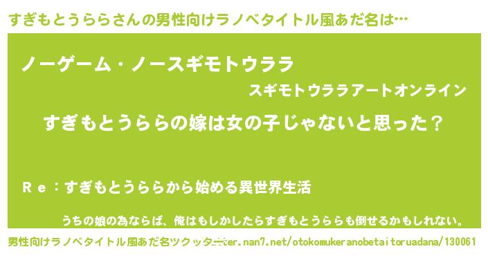 | 女子向けラノベタイトル風あだ名 | 『すぎもとうらら様がみてる』 |