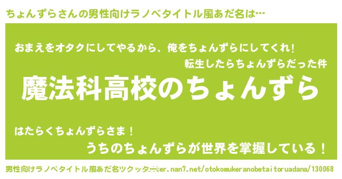 | 女子向けラノベタイトル風あだ名 | 『ちょんずらなんてお断りですっ。』 |