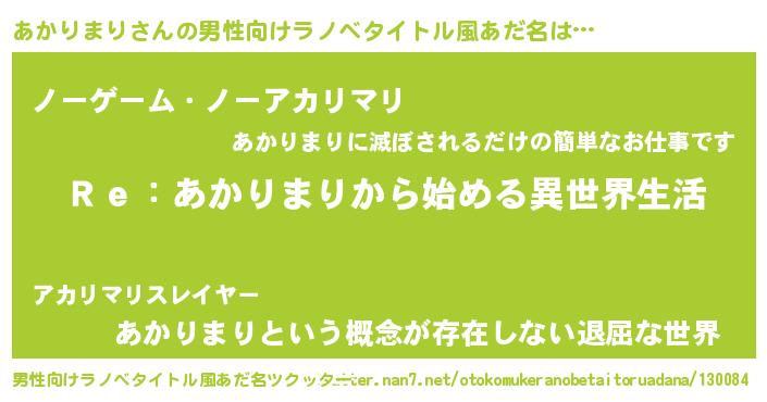 | 女子向けラノベタイトル風あだ名 | 『あかりまりストレイドッグス』 |
