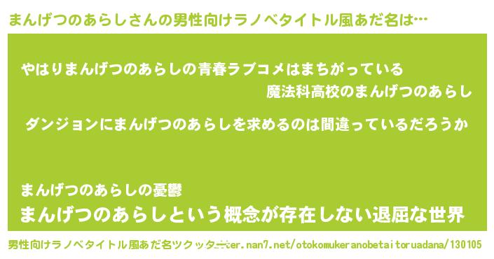 | 胡散臭い通販商品みたいなあだ名 | 『伝統あるペンダント…その名も「まんげつのあらし」』 |