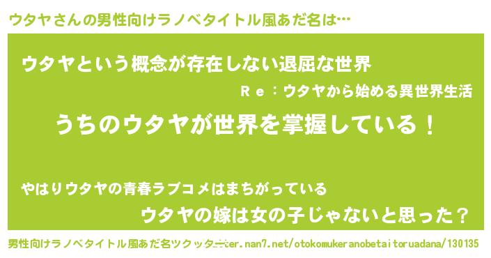 | ヘコむあだ名 | 『ウタヤ(小並感)』『ウタっちょ』 |