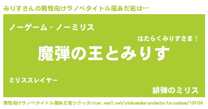 | ヒーロー風カッコイイあだ名 | 『仮面ミリダー』『天空の使者みりす』 |