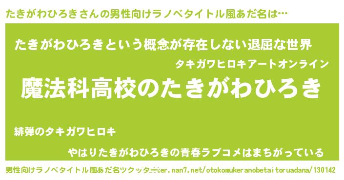 | 女子向けラノベタイトル風あだ名 | 『たきがわひろきなんてお断りですっ。』 |