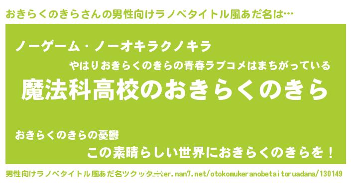 | 女子向けラノベタイトル風あだ名 | 『おきらくのきらなんてお断りですっ。』 |